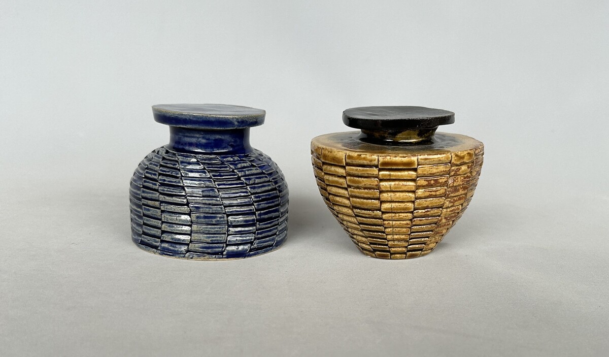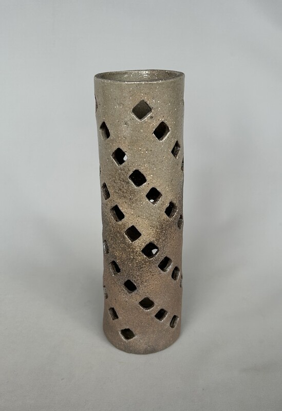 コンプレッサーでグラデーションをつけて透明釉を施し、冷却還元焼成する事で、薪窯作品の風合いに仕上げられます。